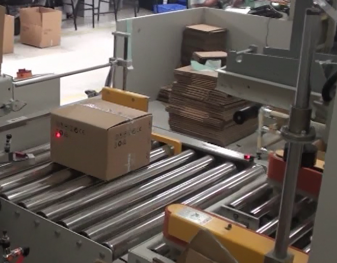 電子行業(yè):聯(lián)想集團(tuán)使用智能選取紙箱規(guī)格開箱機(jī)封箱機(jī)流水線方案